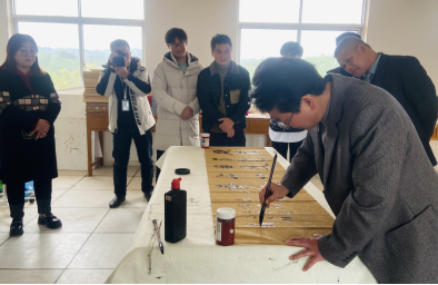研讨会结束后,公司党委书记韦联华分别为初三年级的两个班现场书写了两幅书法作品,并举行了赠予仪式,鼓励同学们要好好学习,通过多读书来改变自己的命运,希望同学们以勤奋刻苦的精神状态迎接中考,争取优异的成绩。